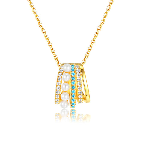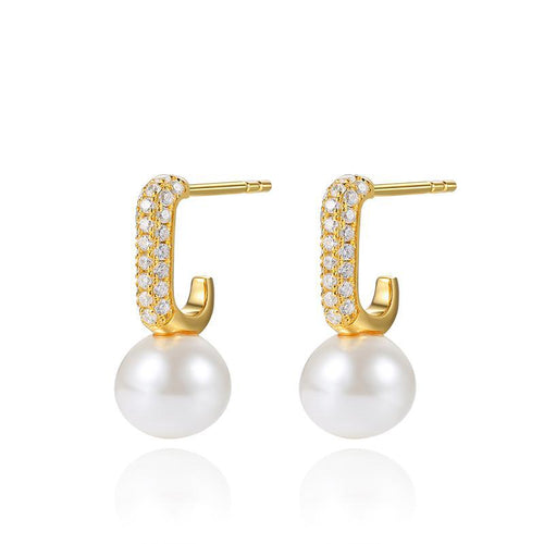 These interlocking gold-plated hoops with a freshwater pearl blend modern elegance. Open-back design, easy to wear for daily and formal occasions